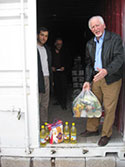 | Dr. James Jennings, Conscience International President, distributes bags of food to Iraqi refugees |