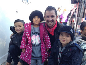 | Conscience International Project Director for Greece, Angelo Velis, with refugee children who have just arrived on the island of Lesbos |
